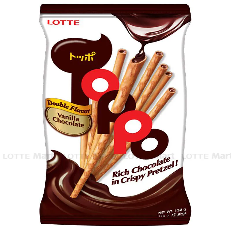 Sản phẩm Bánh que Toppo nhân socola hương vani gói 132g/20 có các đặc điểm sau: