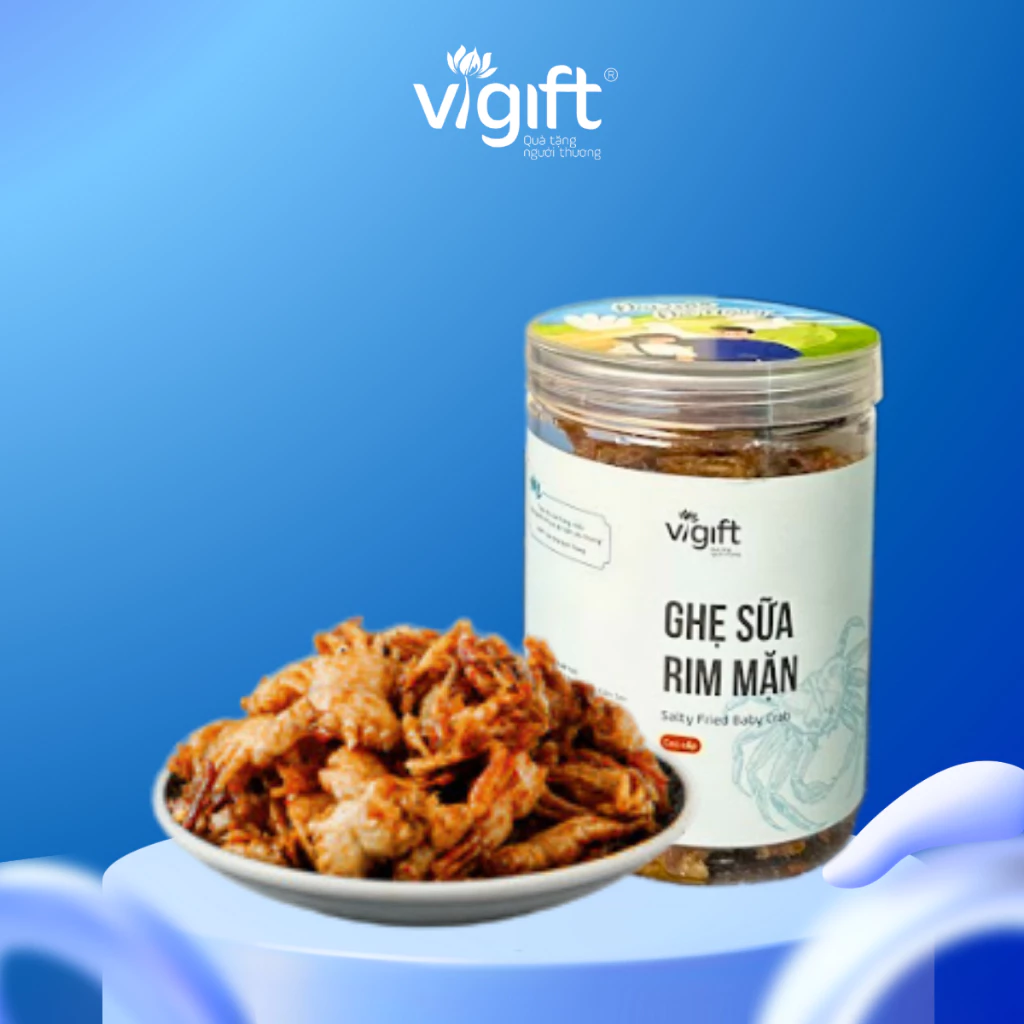 Ghẹ sữa rim mặn Vigift có vị ngọt tự nhiên của ghẹ sữa, vị mặn tinh tế của rim, tạo nên một hương vị đậm đà khó cưỡng. Sản phẩm này rất phù hợp để làm quà tặng hoặc để thưởng thức trong gia đình.