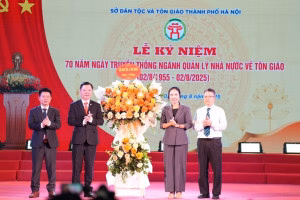 Thành phố Hà Nội vừa long trọng tổ chức lễ kỷ niệm 70 năm ngày thành lập Ban Tôn giáo, tiền thân của ngành Quản lý nhà nước về tôn giáo hiện nay. Sự kiện này đã diễn ra vào ngày 2-8 và có sự tham dự của các lãnh đạo cấp cao, đại diện từ các sở, ngành và các tổ chức tôn giáo trên địa bàn thành phố.