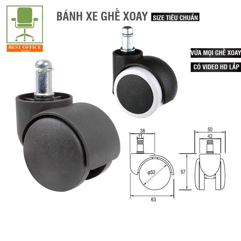 Bánh xe ghế xoay – Di chuyển đa mặt sàn – Lắp cho mọi ghế xoay – Ghế xoay văn phòng – Ghế game