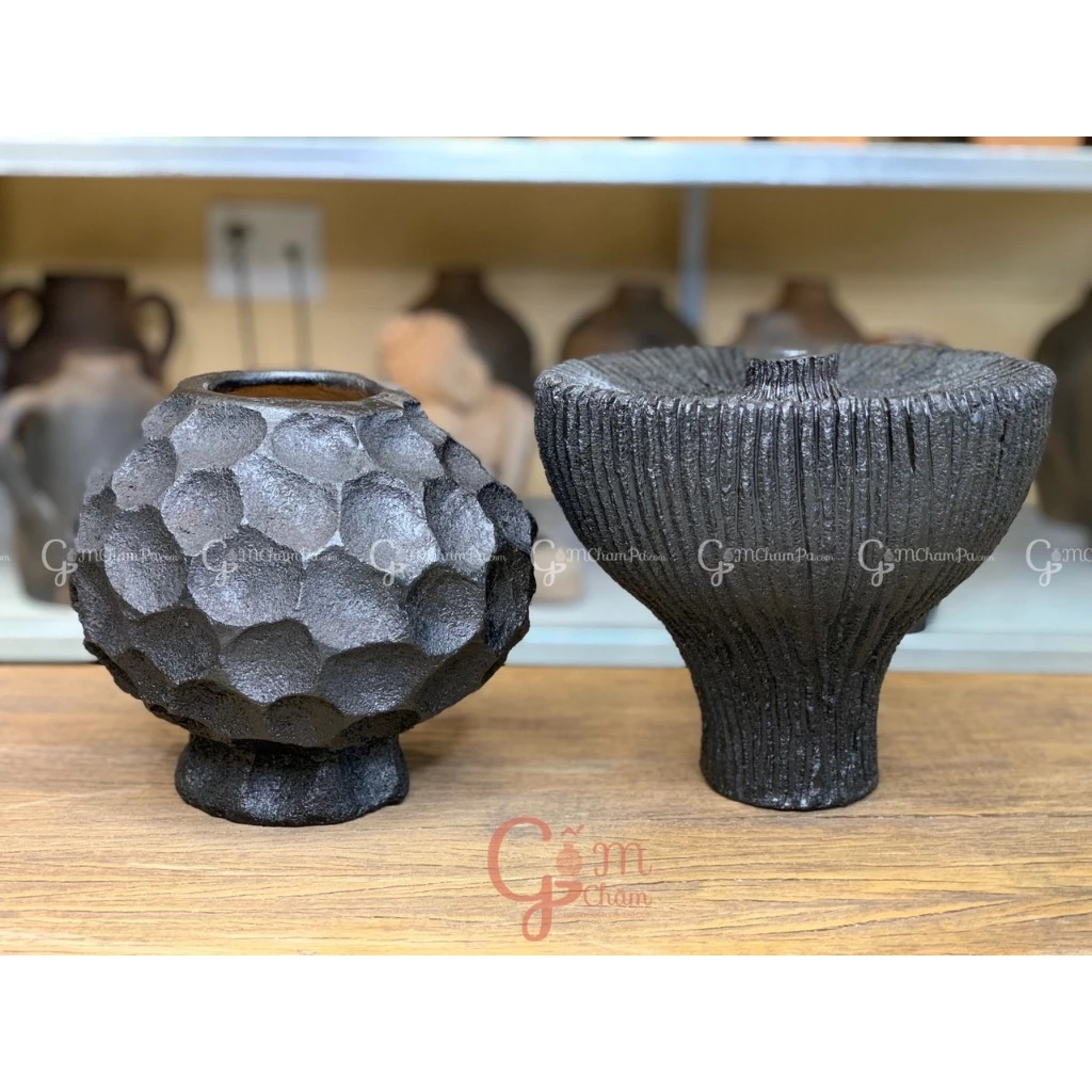 🔥 Bình gốm chăm ninh thuận gốm bàu trúc bình gốm wabi sabi, rustic 6 (màu đen) đang giảm giá!