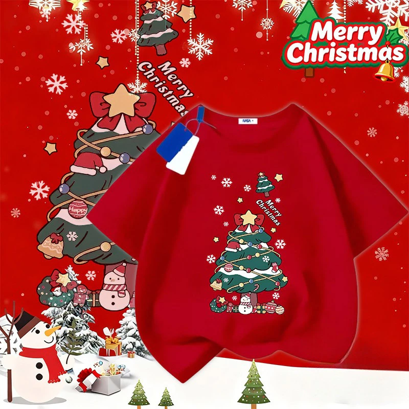 🔥 COD✅ (Hồ Chí Minh)Sản phẩm mới Áo T-shirt tiệc nhóm Giáng sinh Áo đỏ 2026Áo phông Giáng sinh cổ tròn dành cho trẻ em M75 đang giảm giá!