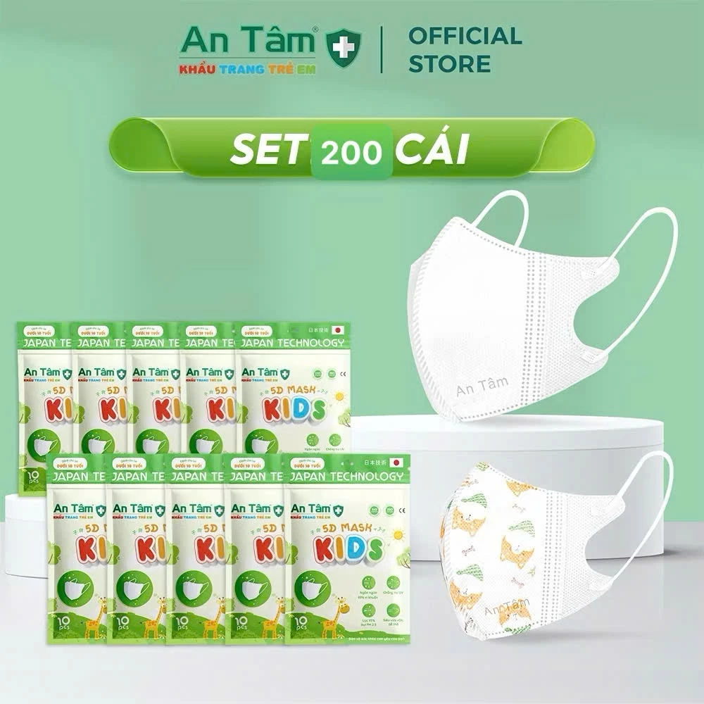 🔥 5D MASK KID – Set 200 cái – Khẩu trang y tế kháng khuẩn trẻ em chính hãng An Tâm, bảo vệ tối ưu, họa tiết dễ thương đang giảm giá!