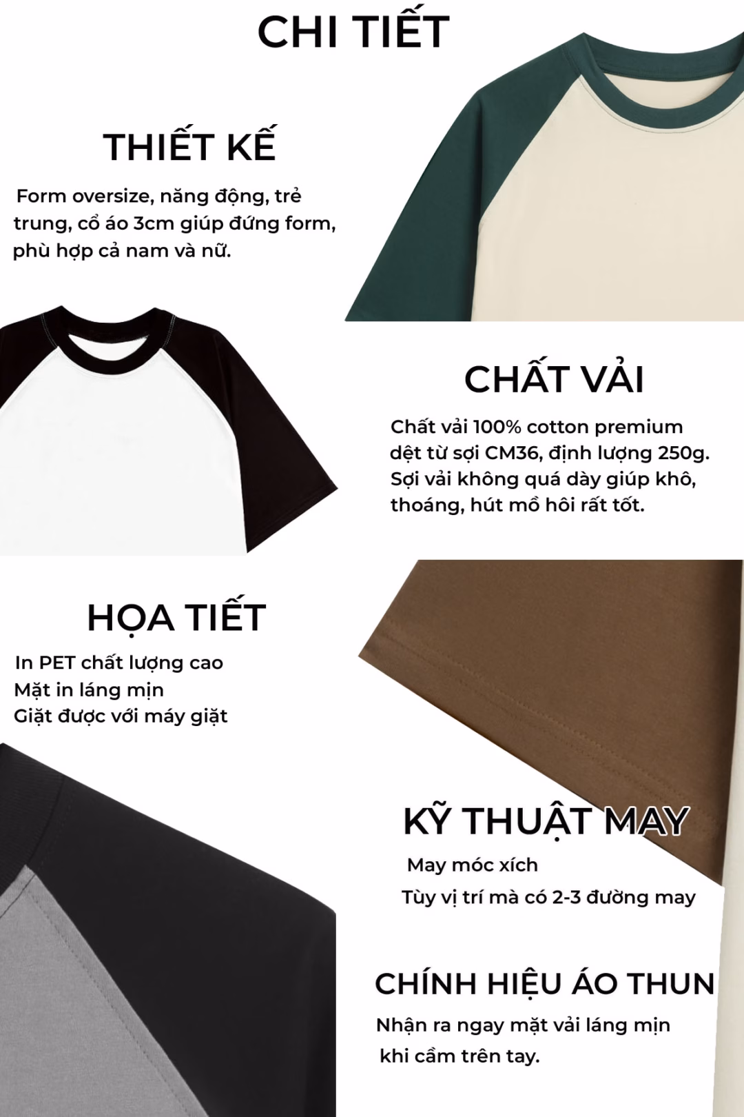 - Cotton cao cấp: độ bền cao, giữ màu tốt, thoải mái khi mặc