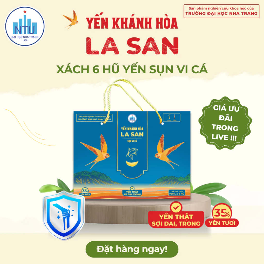 🔥 [35% YẾN TƯƠI] Xách Yến Khánh Hoà La San Sụn Vi Cá Tăng Cường Sức Khoẻ Xương Khớp 1 xách x 6 hũ đang giảm giá!