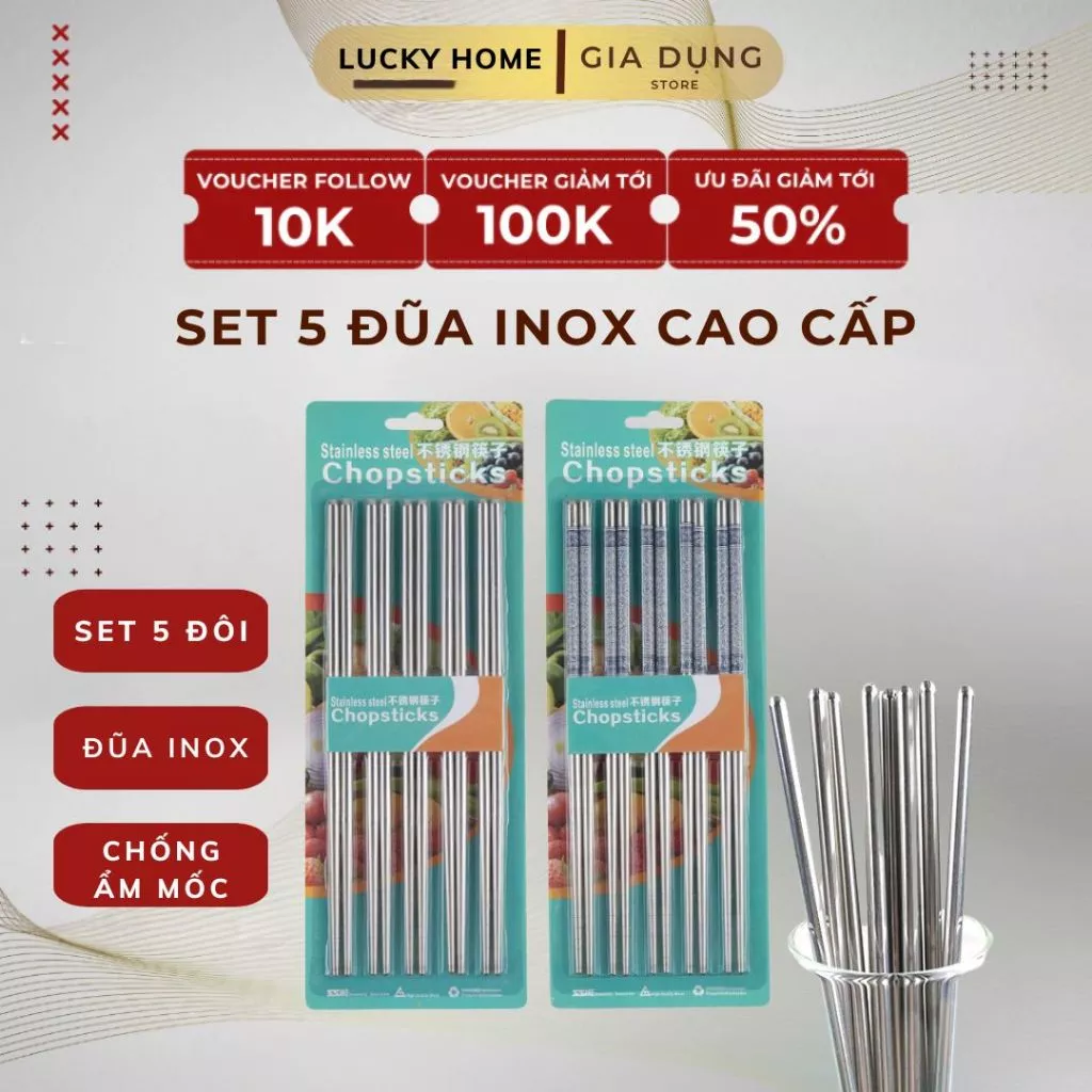 .🔥 SET 5 ĐÔI ĐŨA INOX LUCKY Bền Đẹp, Tránh Ẩm Mốc, Chống Trượt, đũa inox cao cấp đang giảm giá!