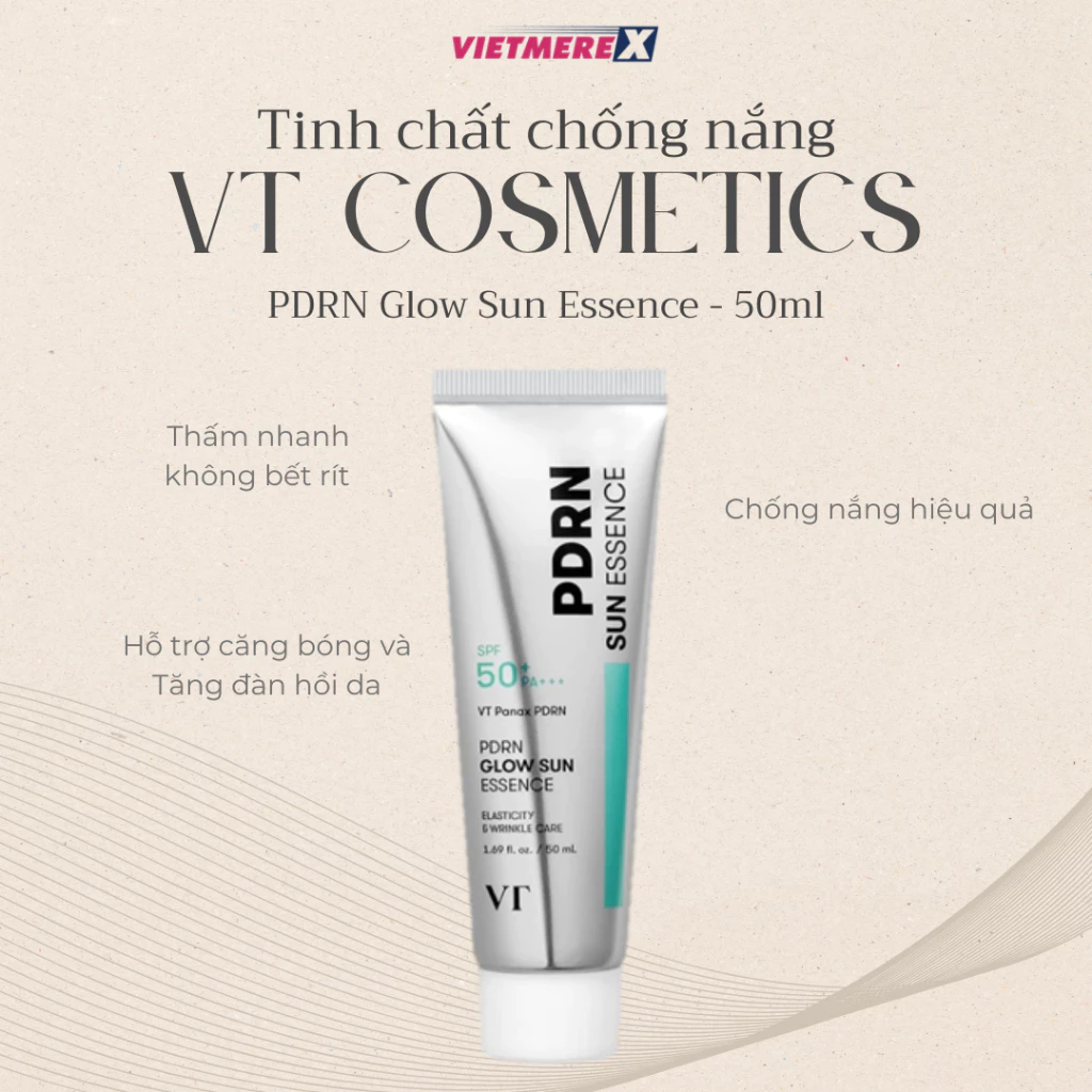 🔥 Tinh chất chống nắng gốc nước – VT PDRN Glow Sun Essence SPF 50+ PA++++ – 50ml đang giảm giá!